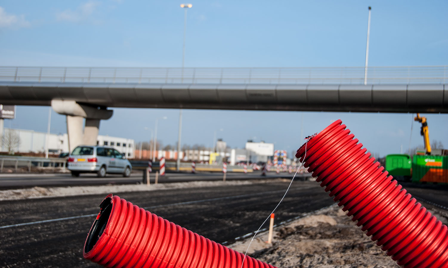 Wat een spektakel kan het aanleggen van een stuk weg zijn. Het is niet even wat piketpaaltjes zetten en dan gaan asfalteren. Was het maar zo makkelijk! Nee, wat ze daar in die hoek van Waalwijk aan het doen zijn, is een wonderlijke logistieke en bouwkundige operatie. Wat nu nog een spaghetti van wegen, afslagen, omleidingen en vele gele borden is, moet straks geruisloze kruispunten van doorstromend verkeer worden. Onderlangs en bovenlangs rijden over een tijdje voertuigen Waalwijk in en uit of nemen de juiste afslag zonder gehinderd te worden door vervelende verkeerslichten.