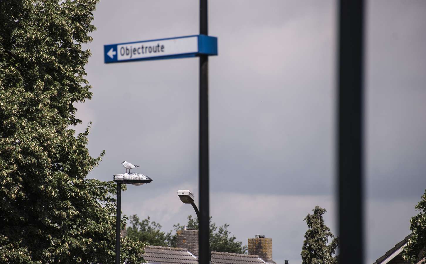 Wat een avontuur, die Objectroute! Ik wist er niets vanaf toen we gingen fietsen, had het ook niet uitgezocht op internet, wilde me laten verrassen. Ik dacht eerlijk gezegd dat het een soort toeristische tocht langs ‘objecten’ in de zin van Wollukse bezienswaardigheden en/of kunstwerken zou zijn. Misschien wel geschikt voor een speurtocht voor kinderfeestjes ofzo... Maar tot mijn verbazing is het een saaie bewegwijzeringsroute. Die begin deze eeuw 165.000 gulden heeft gekost. Toen bedacht de gemeente dat er een aanvulling nodig was op de al bestaande ANWB-borden. Er mochten geen commerciële ‘objecten’ in worden opgenomen. Ergens bedacht iemand een soort ringweg van bestaande doorgaande wegen die min of meer langs de randen van de stad lopen en noemde dat de ‘objectroute’. Langs die route hangen aan lantaarnpalen blauwe bordjes die verwijzen naar sportcomplexen, De Overlaat, Eikendonk, het Schoenenmuseum en meer van dat soort ‘objecten’. Dat had zondermeer nut. Zeker in een tijd dat we nog geen navigatiesystemen in onze auto’s hadden, was een bordje handig. Maar je kunt als bedenker ook te veel bedenken. Want het woord ‘objectroute’ zegt mensen natuurlijk helemaal niks als ze dat op een bordje met een pijltje erbij zien staan. Misschien zijn er een of twee Waalwijkers die zo uit hun hoofd weten wat het is, maar zeker mensen van buiten staan plots voor een raadsel. Ik vond de start van onze fietstocht dan ook een anti-climax, en het was nog koud ook. Maar het werd erg vermakelijk. Niet alleen omdat hoe langer we doorreden, hoe absurder het hele project me voorkwam.