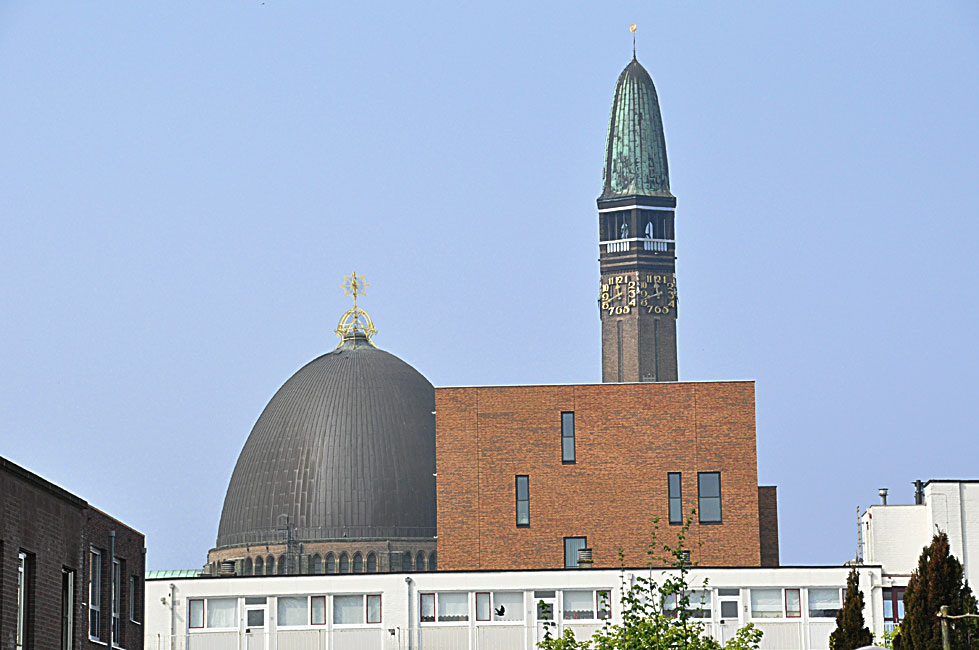 Het grondplan van de kerk is centraalbouw, afgeleid van de Byzantijnse St. Vitale in Ravenna. De kerk telt 19 koepels, afgedekt met een koperen dakbedekking. De toren is 67 meter hoog, de hoofdkoepel 41,5 meter.
